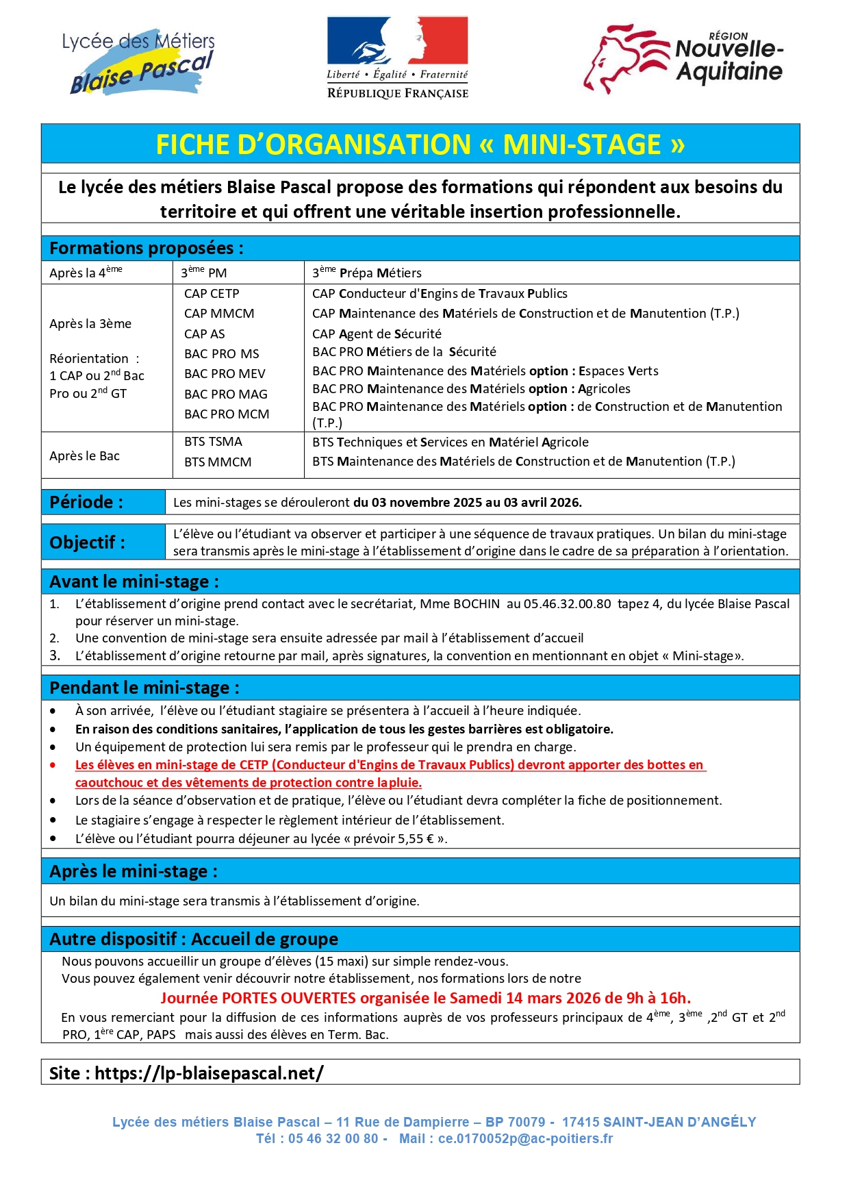 Portes Ouvertes et Mini-stages